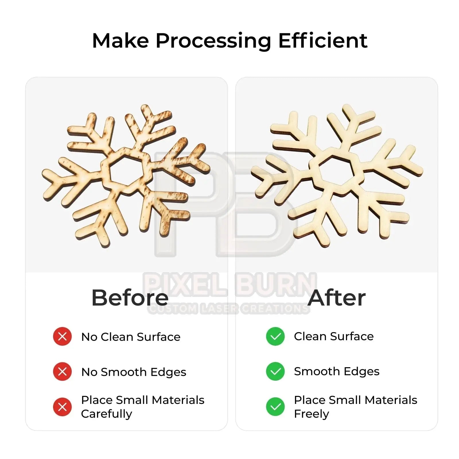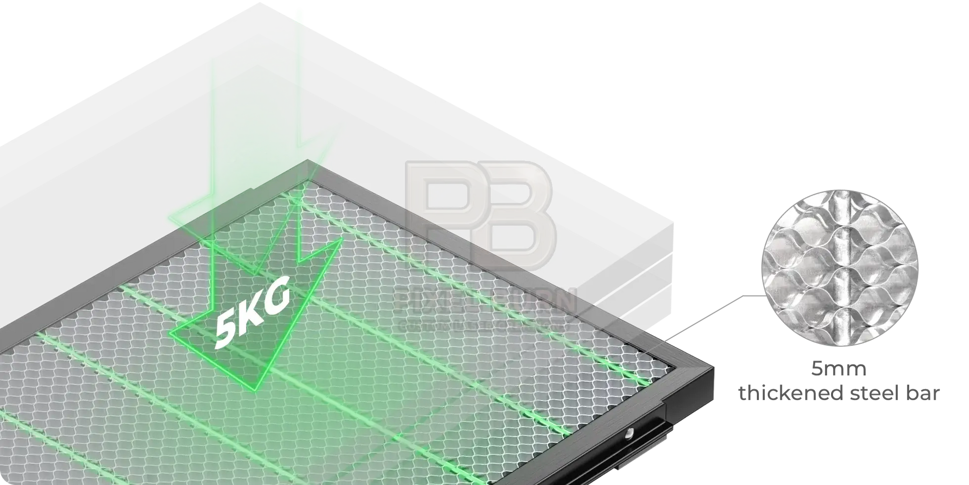 - Enhanced Processing Efficiency – Honeycomb design allows smoke and debris to fall through, resulting in cleaner surfaces and smoother edges on your finished pieces